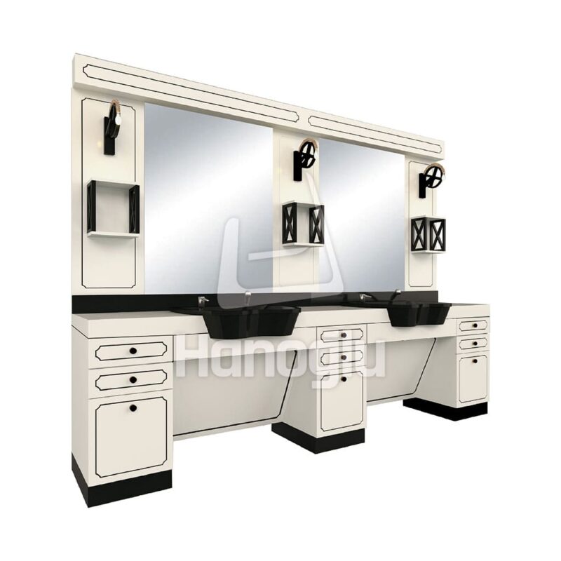 HT901 Berber Tezgahı, su geçirmez MDF gövdesi ve metal aksesuar detaylarıyla profesyonel berber ve kuaför salonları için tasarlanmıştır. Teleskopik frenli çekmece ve fren menteşesi sistemleri, sessiz ve kontrollü bir kullanım sağlarken aplik ve LED aydınlatma çalışma alanını ideal şekilde aydınlatır. Seramik lavabo hijyen standartlarını destekler. Geniş ölçüleri sayesinde birden fazla kullanıcıya aynı anda hizmet imkânı sunan HT901 Berber Tezgahı, fonksiyonellik ve estetiği bir arada sunan profesyonel bir çözümdür.